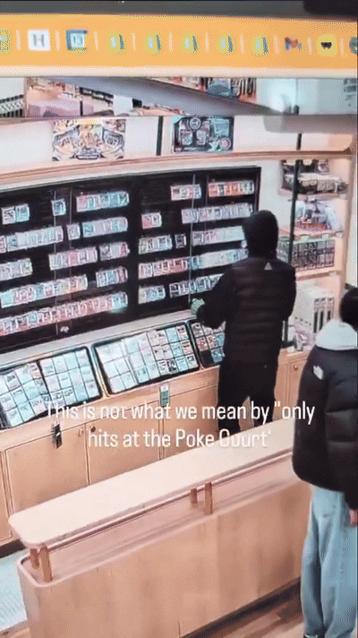 THREE ARMED GOONS took the Poke Court store for about $100,000 worth of card merch when they raided it.