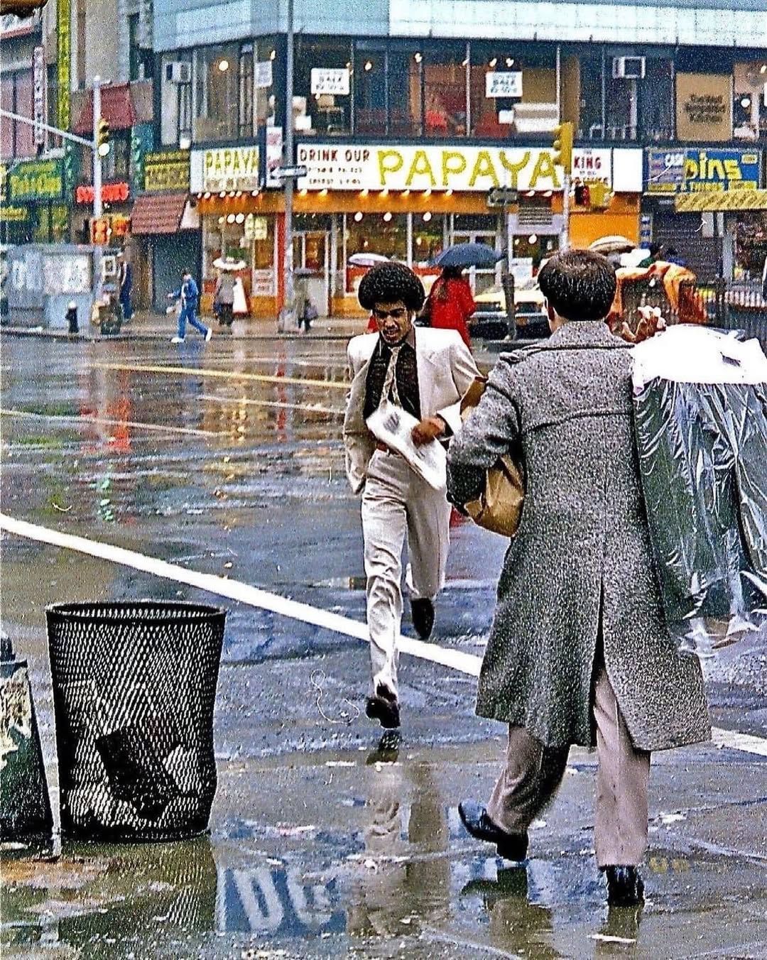 ▀ Crossing 72nd Street In Rain (Upper West Side, NY) - 1970s