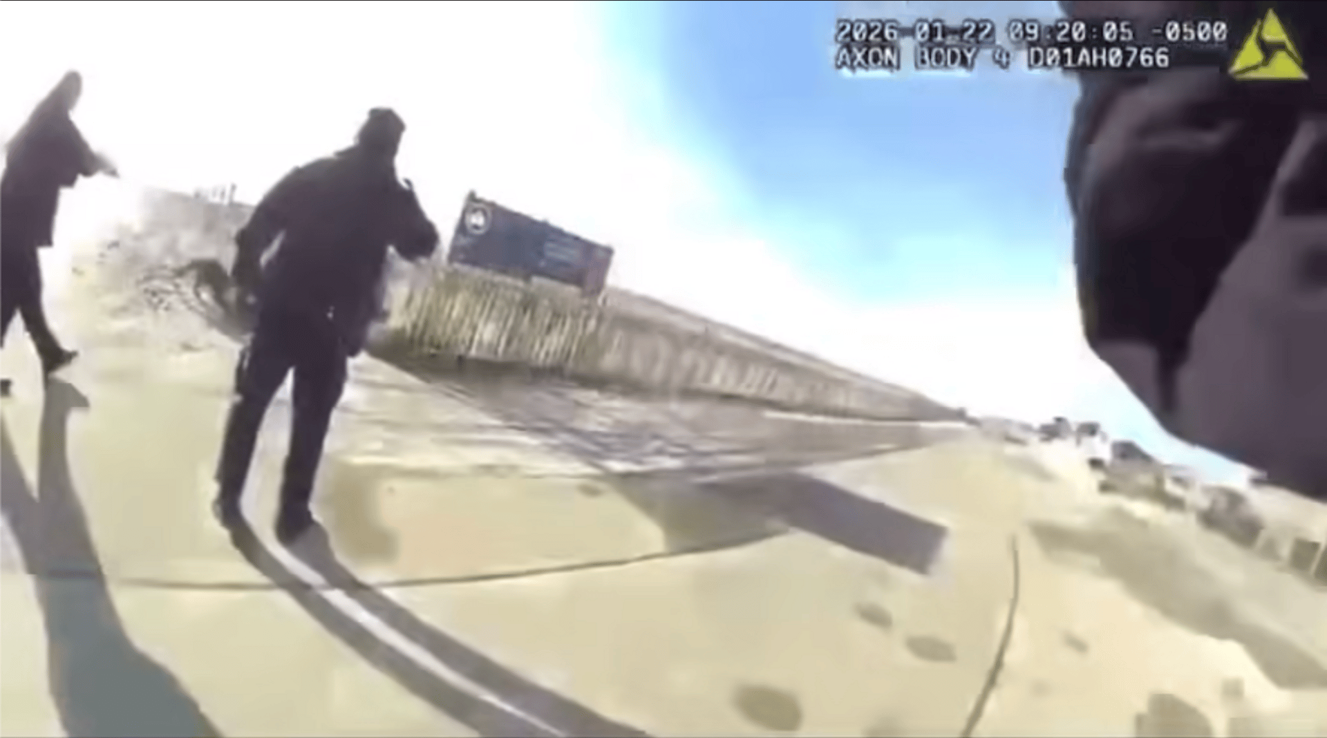 And after each landed some fist licks — the suspect decided it was time to one-up his new foe.