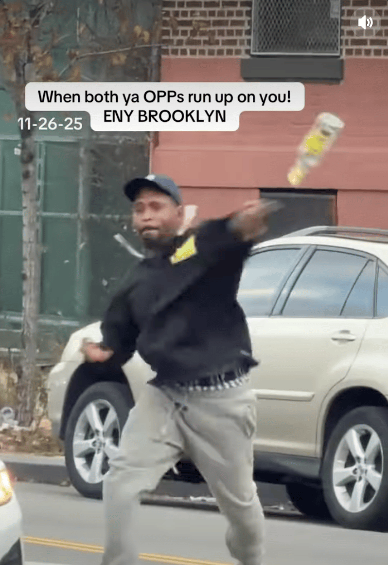 But just when it seems like the aggressor is the bottle flinger — but the man with a long scarf whom he was tossing it was being swarmed by half the neighborhood.