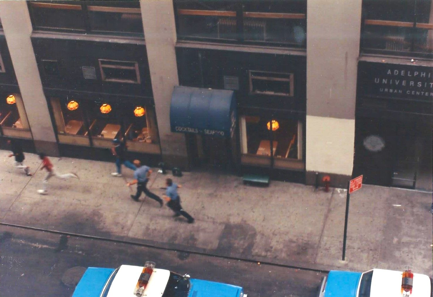 Brandi Merolla: I heard shots fired while in my apartment. I ran to my window to see the drive-by shooting scene with camera in hand. One person was dead, ambulances came for others shot, people poured out of the hotel and police ran down the street in pursuit. Then came the press. Sad times.