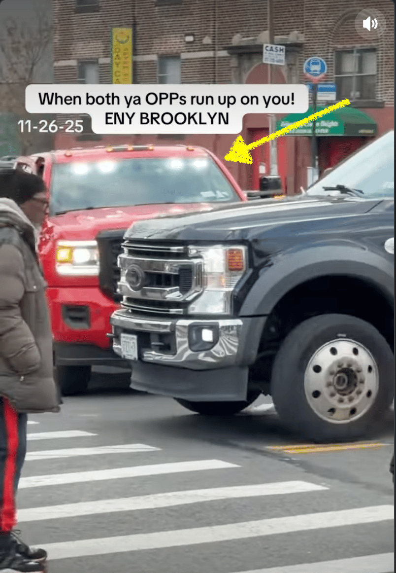 What’s more, the one throwing the projectile appears to either be off-duty or riding around in a red pickup with a light pack that flicked on after the arrest was affected.
