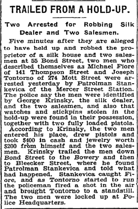 In the 1911 Gross shooting, Guarnieri had been honored with the NYPD's gold medal for bravery. He had worked seven years with the NYPD, lived in the Bronx and left behind a wife and three children a girl 4, a girl 3 and a one year old son.