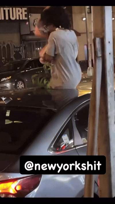 A SEEMINGLY BALLS tripping sort (looks to be barely pushing late teens) was parked on top of a running car — adorning their head with a loose roll of toilet paper.