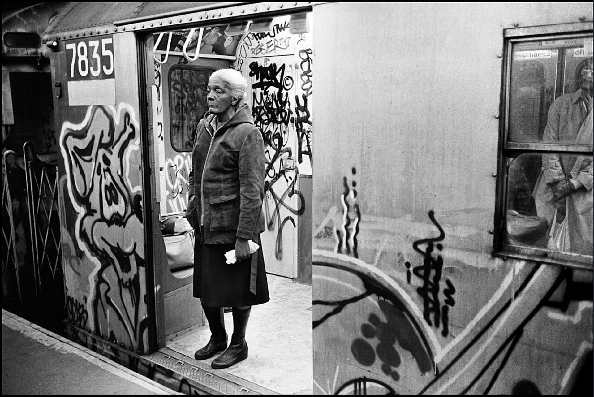 It’s the pausing moments that sear the strongest. Gotham can seem like nonstop humdrum. Neverending chaos. But the pockets of quiet and stillness are there. You have to look and listen and not tune out. Here a two subway travelers are riding on a train that has been given the graffiti business. And yet through the squiggly lines and looney wolf toon — there are two denizens waiting for those doors to close so that they can get one stop closer to home.