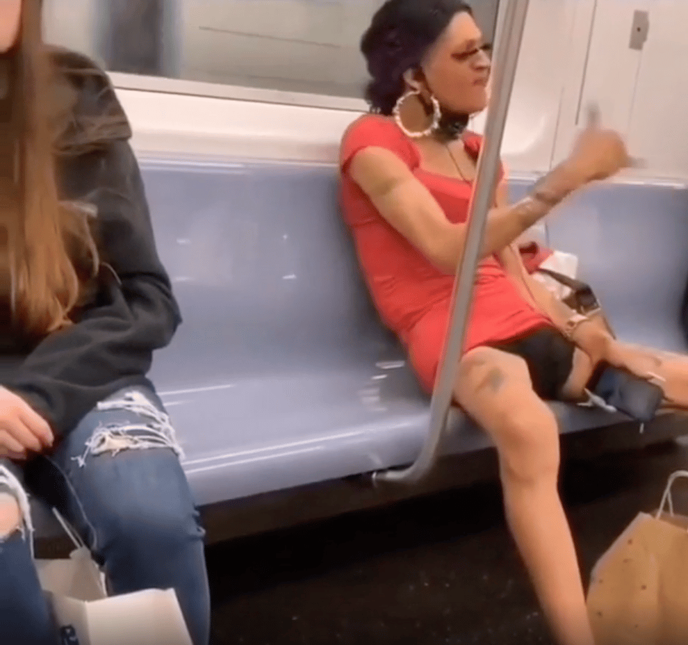 IT’S NOT TAUGHT but everybody who spends time and dips their toe into the city’s wilds (as in not just basking in the white-gloved sterile swaths) soon learn to adopt a neutral countenance as a survival tactic. Years ago, I dubbed it “A.M.P.”… as in “Ain’t My Problem”. And it’s spelled on the two mugs riding on a train next to a cross-dressing, freestyle rapper. He’s not exactly spitting bars…