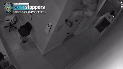 The crook was captured on CCTV back at around midnight on Oct. 14 launching into a building located on Fulton Street and Nostrand Avenue.