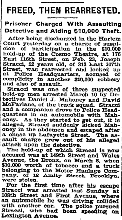 On April 15, 1915, one month before Patrolman Webster was struck, Police Commissioner Arthur Woods (who led the NYPD until 1918) spoke to rank and file cops at the 9th annual dinner of the Traffic Department of the NYPD at the Waldorf Astoria, where he proudly declared to attendees: "You have already demonstrated your ability to keep traffic moving. If I should be at the heads of his department at the end of another 12 months, I want to be able to say that the number of fatal accidents reported for the first quarter of this year, 163, has been certainly reduced to less than 50.”